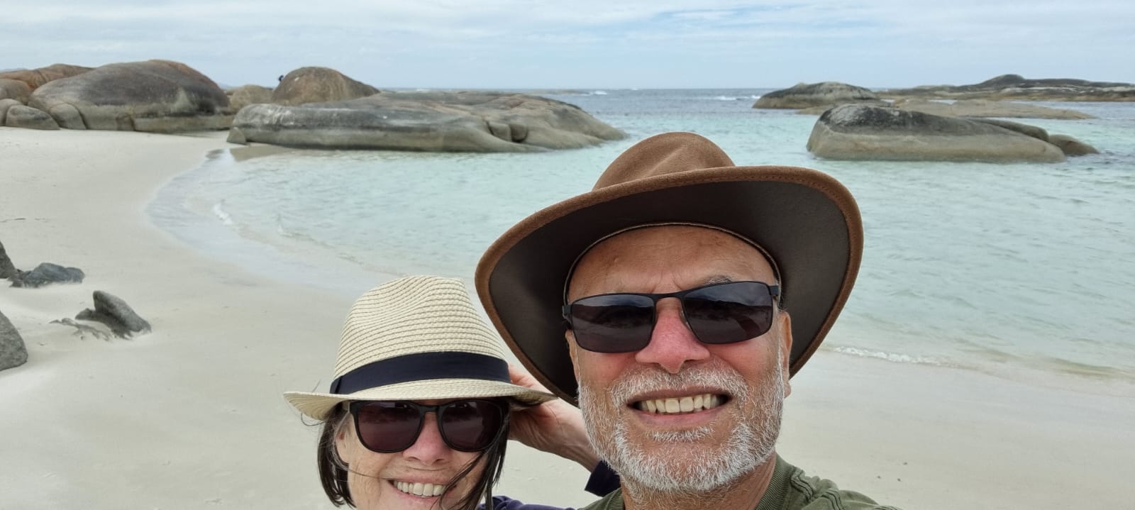 Around 2 1/2 hour drive to Bremer Bay – again stinking hot. We are surfing the hot weather! It was 38c in our Tank as we drove here – the air con does not work well. All of a sudden, as we got to Bremer, there was a cool change and it went from 43c (their hottest day, again) to around 25c – whew!