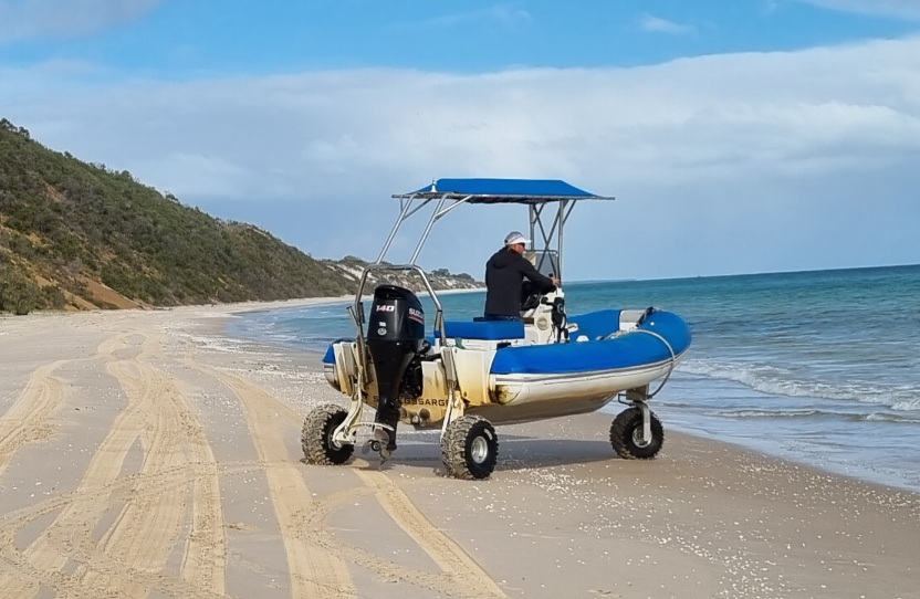 We beached at Bowarrady Creek in a vehicle called Sealegs. A sort of rubber inflatable with wheels on legs, both front and back. When we got to shore the wheels were lowered and a different engine used to power them. Very clever.