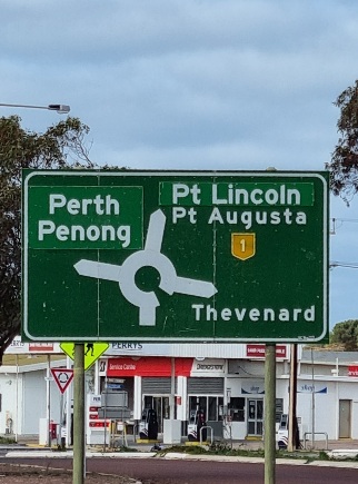 We’ve left Kimba. Stop for coffee at Wudinna Bakery and it’s surprisingly good. 103 km done, 211 km to go today. We’re going really well at between 90-100 kph. We pull over by the wayside for lunch, another 123 km done, 88 km more to Ceduna. Start off again. Wait a minute, Tank, why are you going so slow? Have I put you in the wrong gear? No. Why don’t you go more than 60 kph at best?? And that’s how fast (slow) Tank went until we got to Ceduna. 88 km took us 1 1/2 hours.