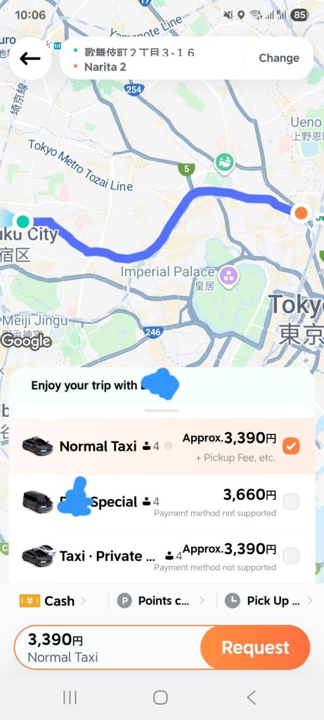 Secondly, after a twelve and a half hour flight with little sleep, we arrived in Tokyo. I thought that I was being clever (probably my first mistake) and got access to a “ride sharing” app. It showed me the fare.